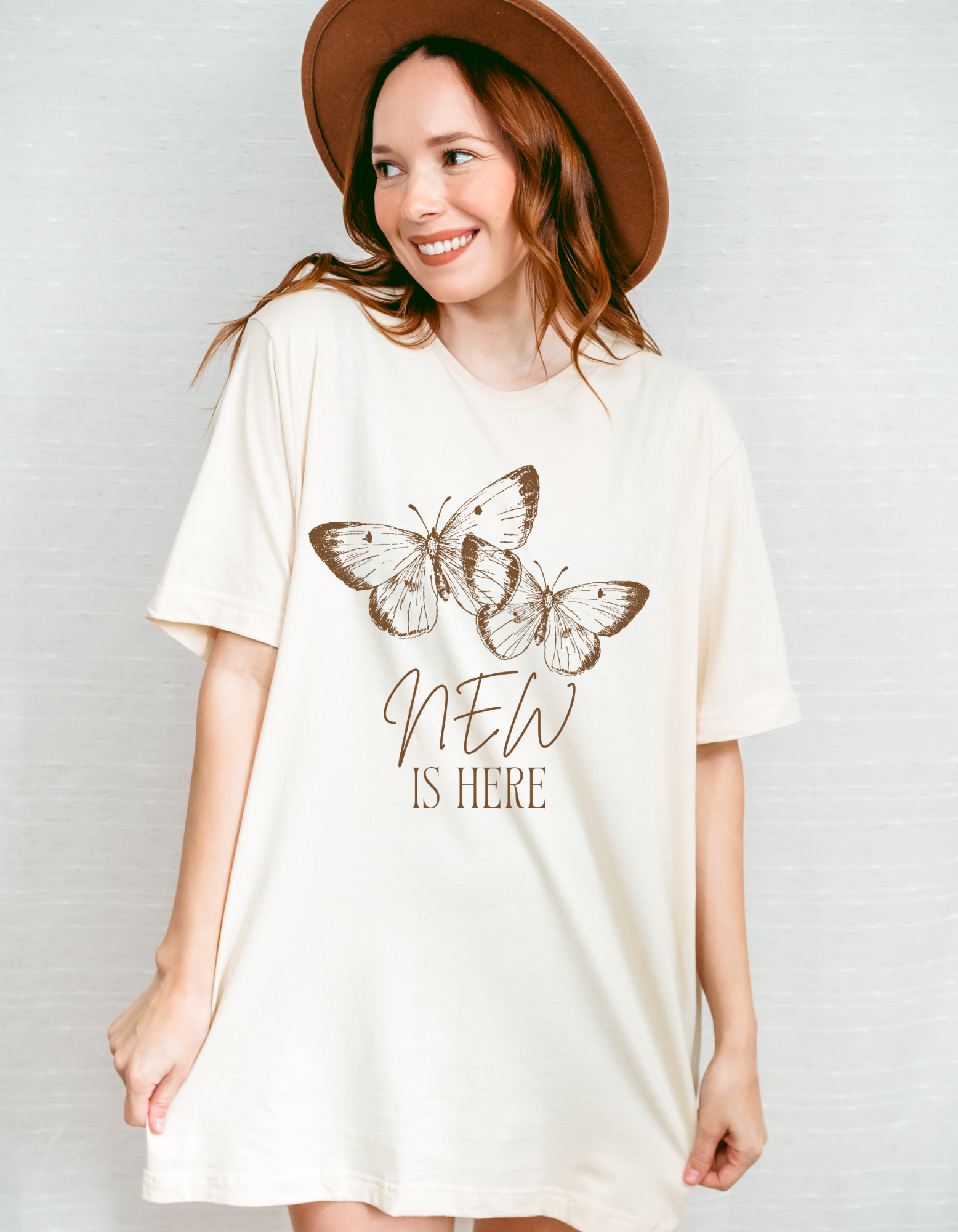 Soft, simple, and full of meaning — this tee celebrates new life in Christ with a butterfly design and the promise of 2 Corinthians 5:17: “The old is gone, the new is here.” A beautiful reminder that transformation begins with Him.