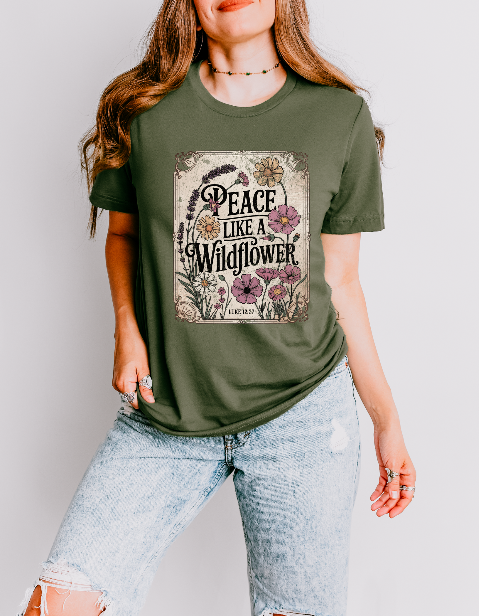 This tee is for the soul that stays rooted in grace and dances in the breeze. Soft, sweet, and a little untamed — just like wildflower peace.